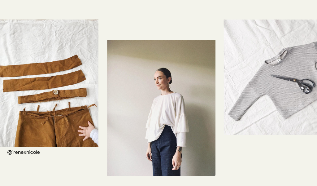 Instagrammers Cecile from @irenexnicole, Madeline from @theessentialsclub and Geneva of A Pair & A Spare fame (now Collective Gen) are showing their followers how to create lush cottage-core linen dresses, wardrobe basics such as stripe tees and even your own sofa cushions, all in the perfect Instagram grid. The endless search for that perfect dress is no longer in Vogue, now we just make it!