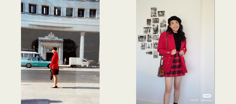 ”This red blazer was from the ‘80s. My mum purchased it in her mid ‘20s when she was on her first holiday. My parents had just immigrated to Australia and travelled to Hong Kong to celebrate their new citizenship and life. My dad purchased this gorgeous red blazer, a leather bag (which we still have as well!) and a watch for her as a souvenir of their first holiday together. I like to style it with a similar red plaid skirt and black boots or loafers. Also, pairing it with a beret makes it look so chic and Parisian! I would go to Paris one day with my mum and wear this outfit!”